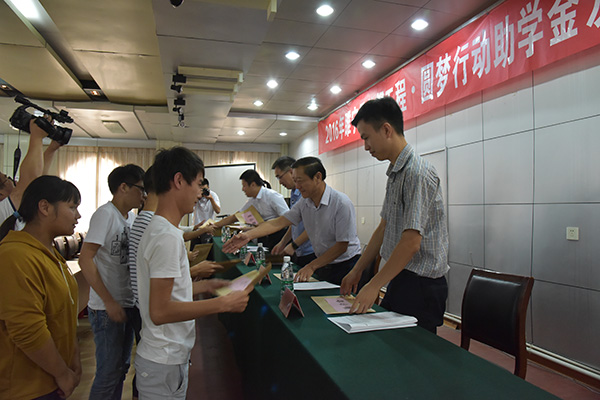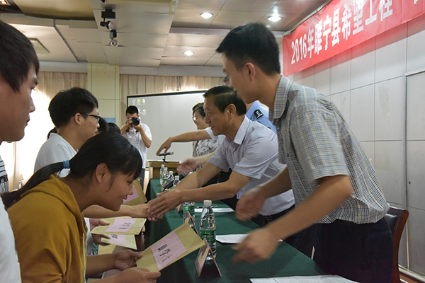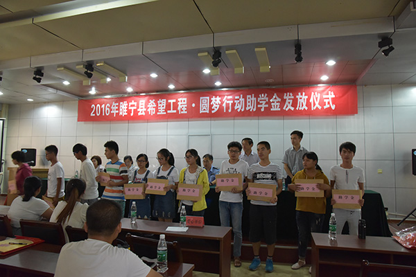 8月26日,睢宁县2016年希望工程·圆梦行动助学金发放仪式在睢宁县卫计委聚会室举行。77体育药业团委为10位难题家庭的高考子女送去了助学金。